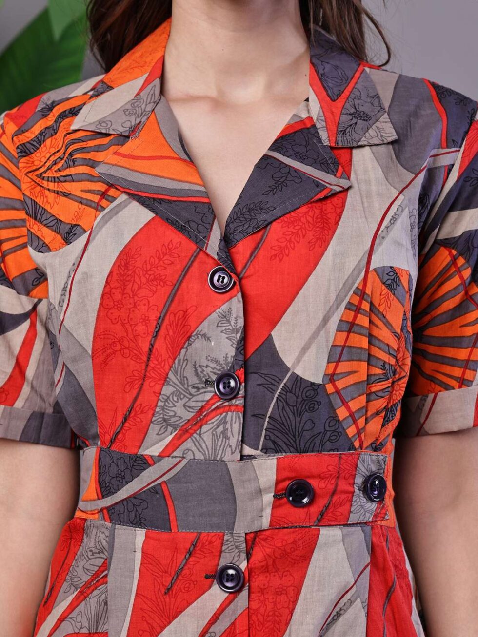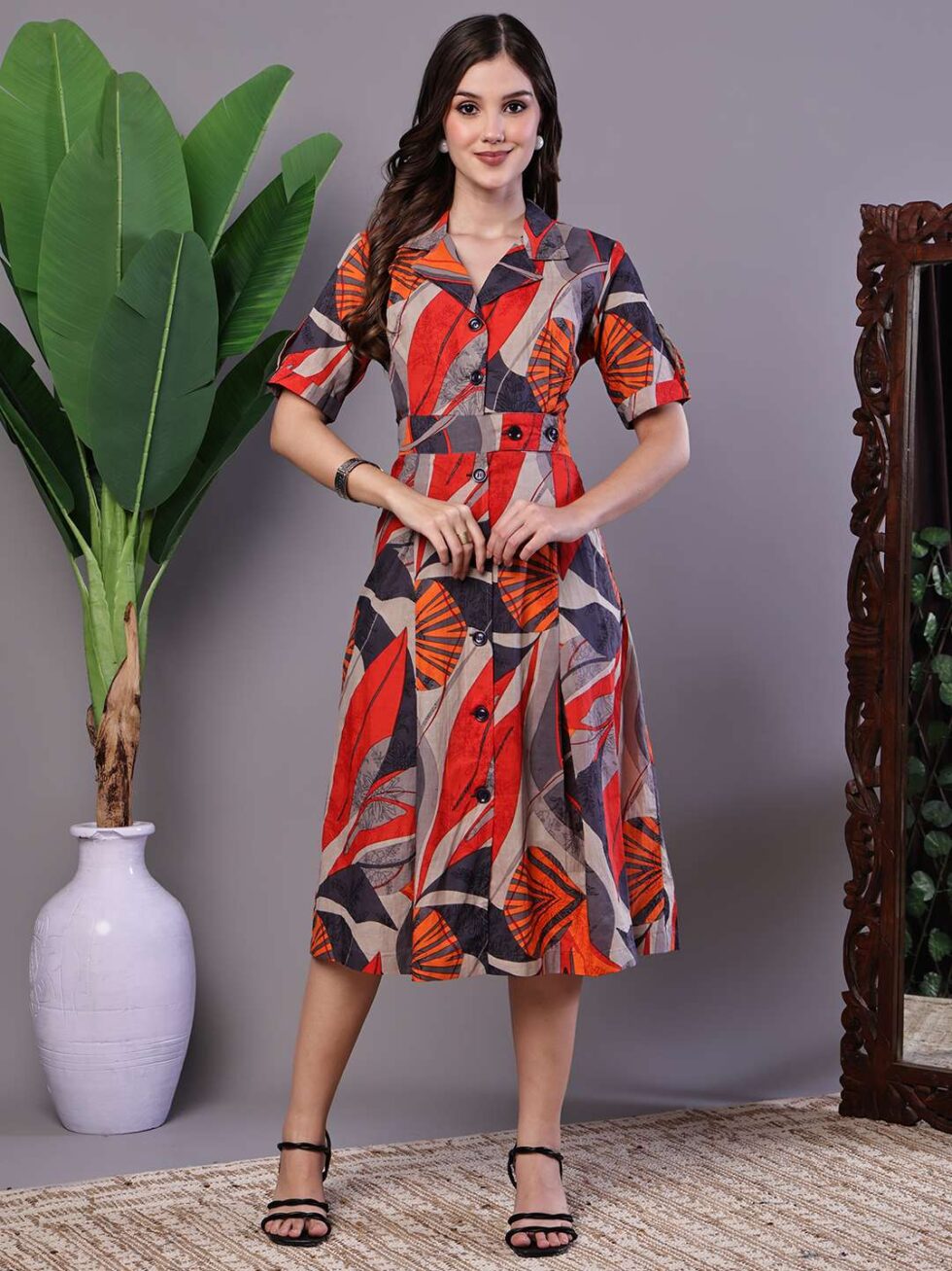 Be the first to review “Women’s Leaf Print Button-Down Cotton Midi Dress”